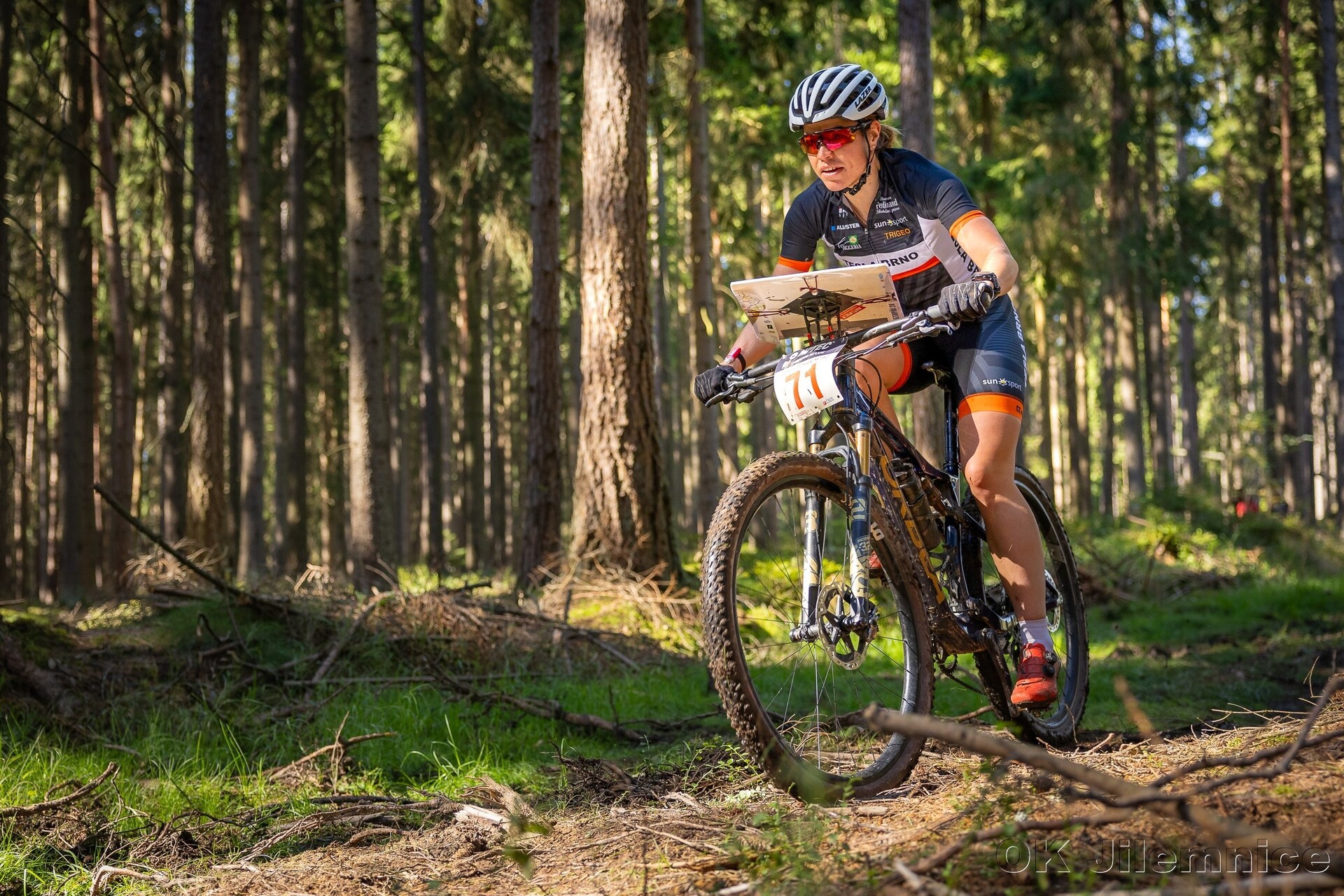 Nedělní závod začal pro všechny poměrně zostra. Osm kilometrů na start není úplně běžná vzdálenost a mnozí tak měli cestu ke koridorům delší než pak samotný závod. Aly byla to před middlem docela pěkná slunečná rozcvička. Rozdýchání a pořádné okysličení mozku přišlo vhod hned po startu. Většinu kategorií totiž stavitel poslal za prvními kontrolami do míst, která se jako cesty tvářila jen v mapě. Realita zejména pro první startující vypadala spíše jako průjezdy hustým borůvčím a cesty ve stometrových pruzích mechu viděl jen málokdo. Čím blíže k Mostku, tím nabíraly cesty zřetelnějších kontur a z problému "najdi cestu" se stal problém "nepřejeď odbočku". Oblastí s řadou podobných paralelních cest bylo v mapě více a chybám se na nich nevyhnuli ani ti nejlepší. Na závěr pak byl pro závodníky přichystán průjezd obcí velmi podobný tomu, který absolvovali elitní závodníci v rámci loňského mistrovství světa. Na domnělou "znalost" terénu v závěru pak mnozí doplatili ve finiši diskvalifikací, když to sypali na sběrku mimo cestu, o tom se ještě zmíníme později.